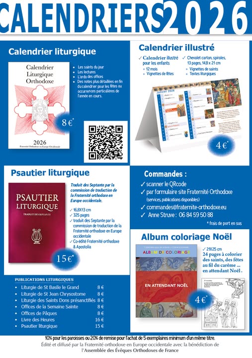 Les calendriers 2026 de la Fraternité orthodoxe sont disponibles